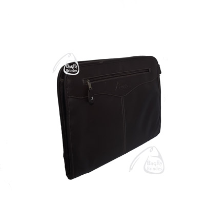 Pasta para evento com bolso frontal com fechamento em zípper, e divisao interna.