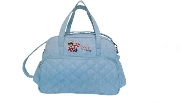 Bolsa de bebê grande, toda acolchoada, alças de mão e ombro. Detalhes do bolso frontal em matelassê, Tecido: courino milano. Cor: Azul bebê
